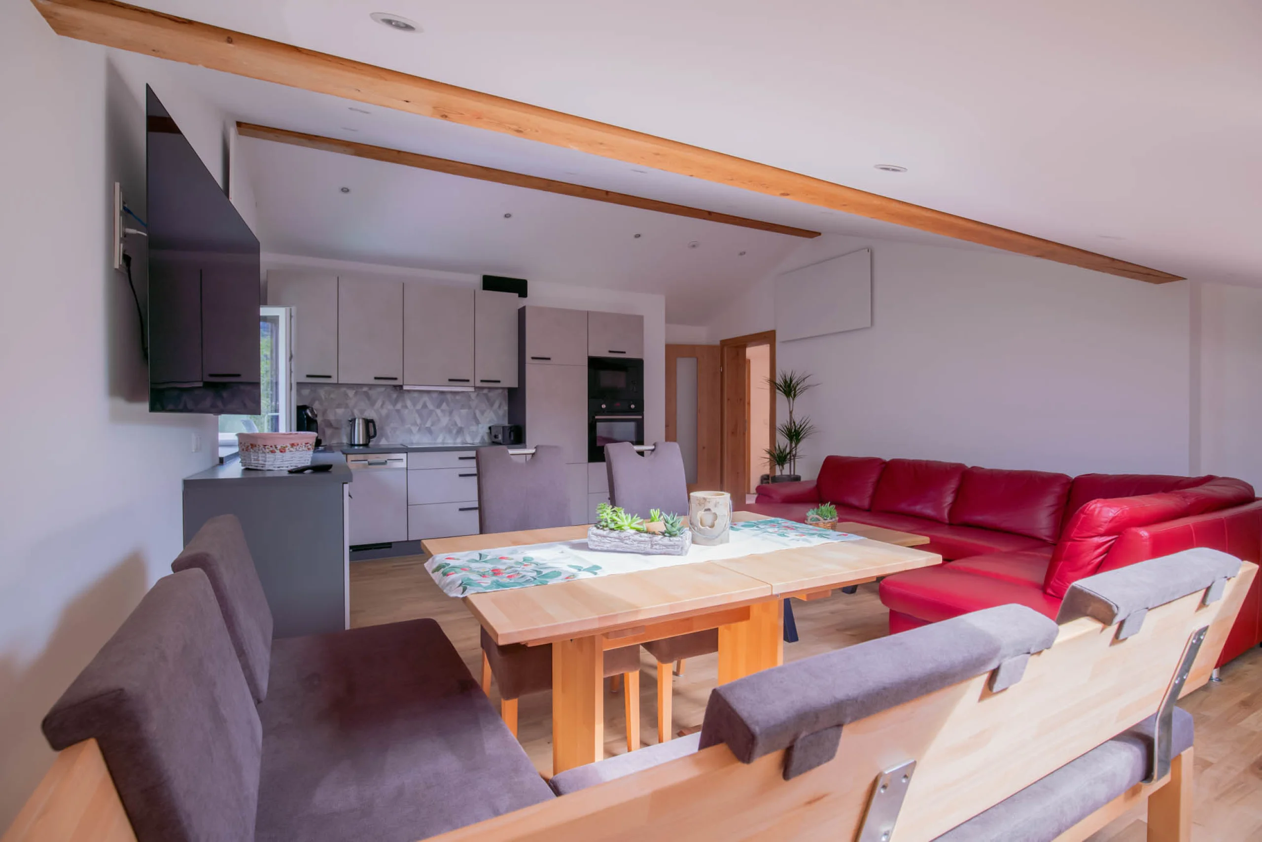 Das hochwertig eingerichtete 3 Zimmer Smart-Home-Apartment im Dachgeschoss mit einer Größe von 98m², befindet sich direkt am Radweg in Bludenz am Illufer. Sie besteht aus zwei getrennten Schlafzimmern (2 Bett, 4 Bett), sowie einem Bad mit Dusche und einem grossen Wohn- und Essbereich. Jedes Zimmer verfügt über einen separaten TV und Radioanschluss. Das Apartment bietet zudem einen Autoabstellplatz und einen Abstellraum für Skiausrüstung und Fahrrädern.